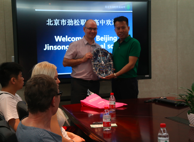 北京市劲松职业高中,12日傍晚,捷克布拉格酒店烹饪学校卡雷尔校长一行18人再一次抵达劲松职高,这是双方自2016年签订友好交流协议确定友好校关系以来的第三次互动。此次访问行程共14天,学校为捷克师生安排了精彩纷呈的体验、学习课程,内容涵盖中餐烹饪、中国书法、京剧脸谱、抖空竹等极具中国传统文化特色的课程。