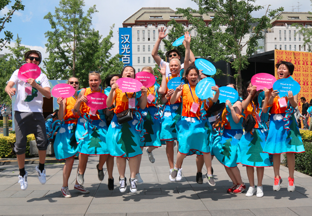 5月15日,主题为“你好 Moi,赫尔辛基 Helsinki!” 的活动在北京西单文化广场拉开帷幕,芬兰赫尔辛基职业学院师生与我校师生一对一结成小组,与前来广场进行文化休闲活动的人们展开体验式互动(如:北欧式健走体验、脸部彩绘体验和学说芬兰俗语等)宣传芬兰文化,以此来庆祝北京与赫尔辛基建立友好城市10周年。