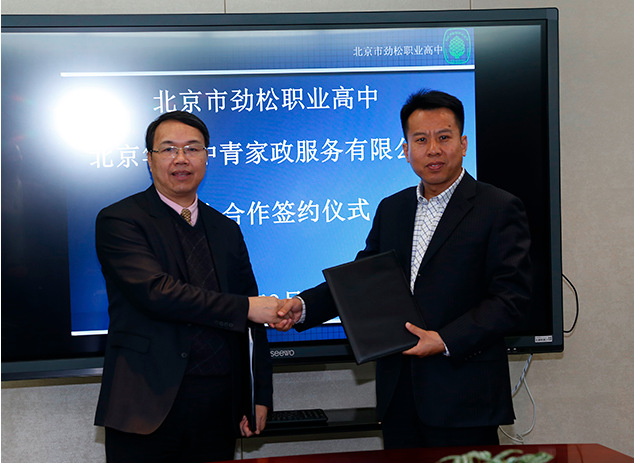 3月10日上午,北京市劲松职业高中与北京华夏中青家政服务有限公司校企合作签约仪式在劲松职业高中常营校区举行。参加签约仪式的有华夏中青董事长庞大春、总经理杨琳、副总经理陈谦、培训总监吴浩恺、校企合作部主任赵江、网络宣传部主任杨广愉,劲松职业高中校长郭延峰、党总支书记吴少君、副校长王为民、副校长于忠波、对外交流办公室主任刘杰。校企双方有关负责人共同见证了这一重要时刻。